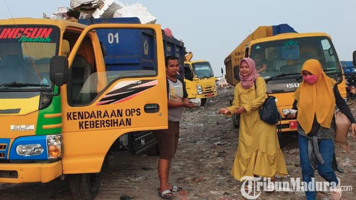 TRIBUNMADURA.COM, GRESIK - Hijabee community Gresik menggelar santunan kepada para tukang sampah di Tempat Pembuangan Akhir (TPA), Kabupaten Gresik, Rabu (9/1/2019).