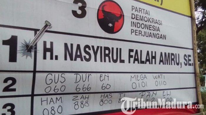 Kali ini, sasarannya adalah sejumlah banner dan baliho milik Caleg DPR RI dari PDIP Dapil Kabupaten Lamongan dan Gresik, Nasyrul Falah Amru, yang dirusak oleh orang tak dikenal.