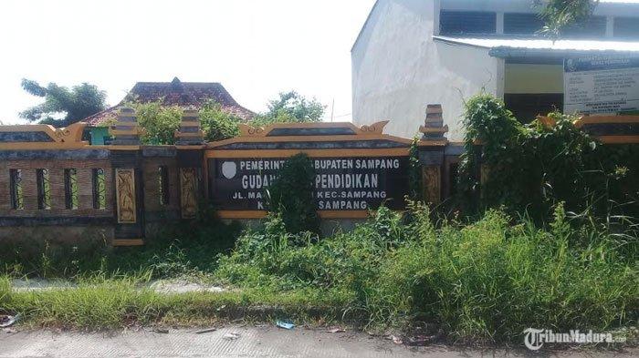 TRIBUNMADURA.COM, SAMPANG - Gudang penyimpanan barang milik Dinas Pendidikan Sampang, Jalan Mangkubumi Kecamatan Sampang, Kabupaten Sampang, tampak tak diurus.