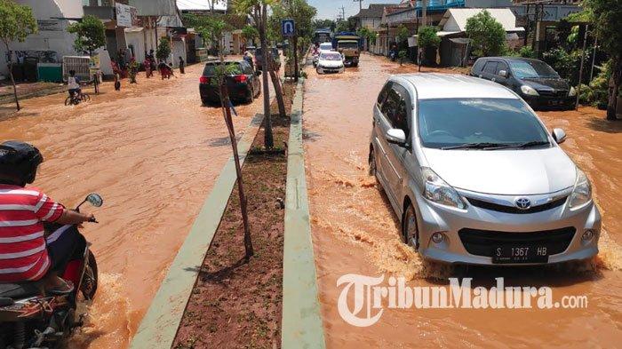 TRIBUNMADURA.COM, TUBAN - Banjir yang menggenangi jalan Letda Sutjipto yang berada di Kelurahan Mondokan, Kecamatan Tuban, Rabu (6/3/2019), ternyata bukan hal baru.