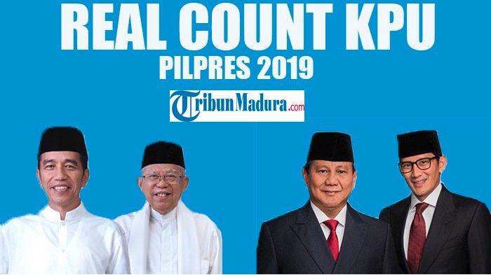 Real Count KPU Pilpres 2019 antara pasangan Capres dan Cawapres Jokowi-Maruf Amin Vs Prabowo-Sandi (Jokowi Vs Prabowo).