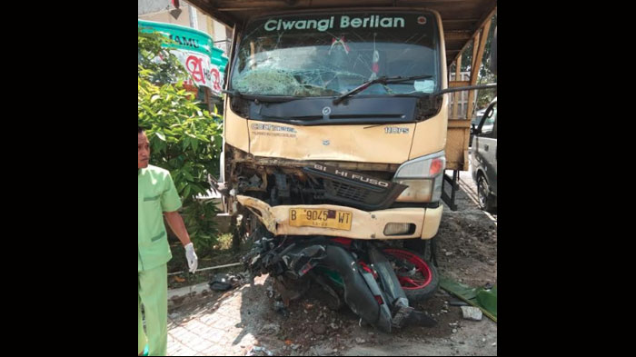 Motor korban ada di kolong depan truk, sementara Pudjianto dan Sriwahyuni mengalami luka yang cukup parah.