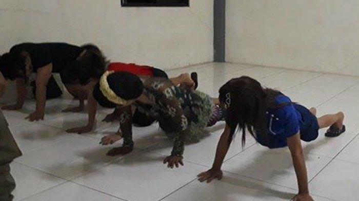 Saat ditangkap, mereka dihukum Satpol PP untuk push up agar jera.