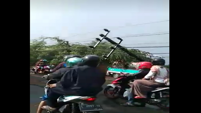 BREAKING NEWS: Akses Suramadu Bangkalan Diterjang Puting Beliung, Pohon Roboh & Tiang Listrik Miring