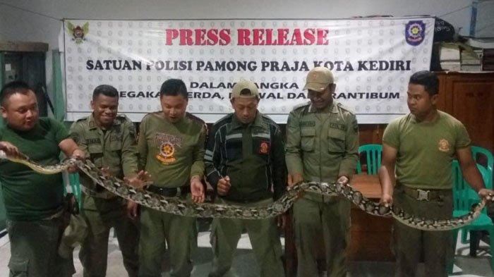 Selanjutnya penemuan ular piton dilaporkan masyarakat kepada petugas Satpol PP Kota Kediri.