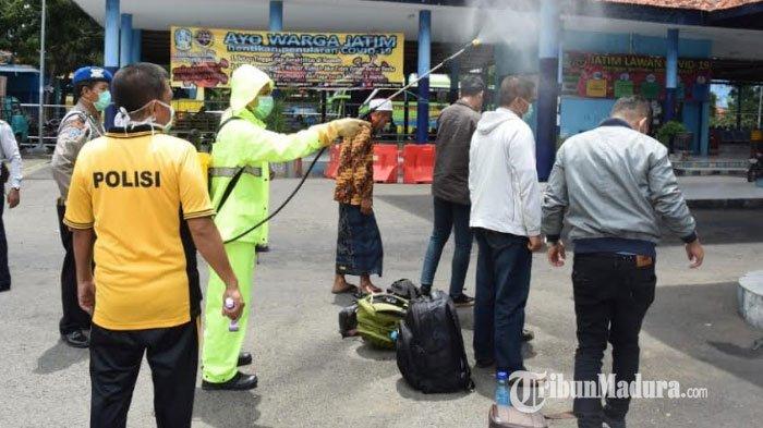 Penumpang Bus dari Jakarta Disemprot Disinfektan di Terminal Ronggosukowati Pamekasan