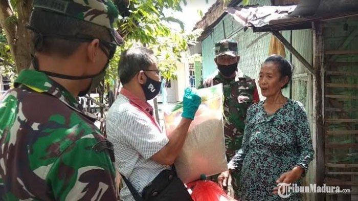Dandim 0829 Bangkalan membagikan 350 paket sembako untuk masyarakat kurang mampu yang terdampak pandemi virus corona.