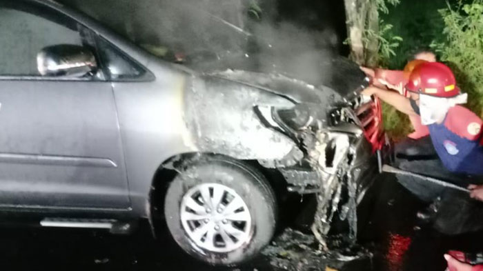 Mobil Toyota Innova Mendadak Terbakar di Ring Road Kota Madiun, Begini Keadaan Pengemudinya
