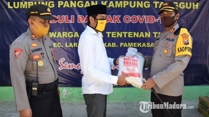 Saat meninjau sejumlah Kampung Tangguh tersebut, Kapolres Pamekasan juga memberikan bantuan sosial berupa paket sembako.