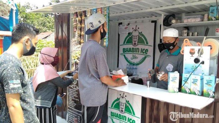 TRIBUNMADURA.COM, BANGKALAN - Kedai Bhabin Ice di depan Pasar Baru Socah, Kabupaten Bangkalan, tidak semata-semata sebagai ladang bisnis bagi Babhinkamtibmas Desa Socah, Bripka Khoirul Anam.