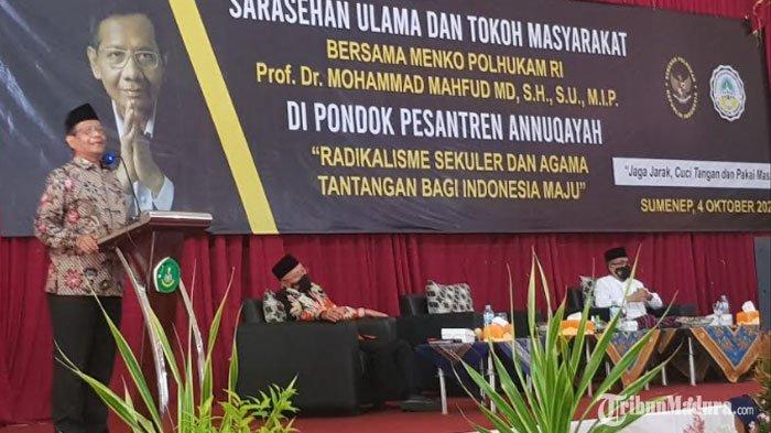 Hal itu disampaikan langsung oleh Mahfud MD saat mengisi dialog Sarasehan Ulama dan Tokoh Masyarakat di Aula As-Syarqawi Pondok Pesantren Annugayah Guluk-guluk, Kabupaten Sumenep, Madura.