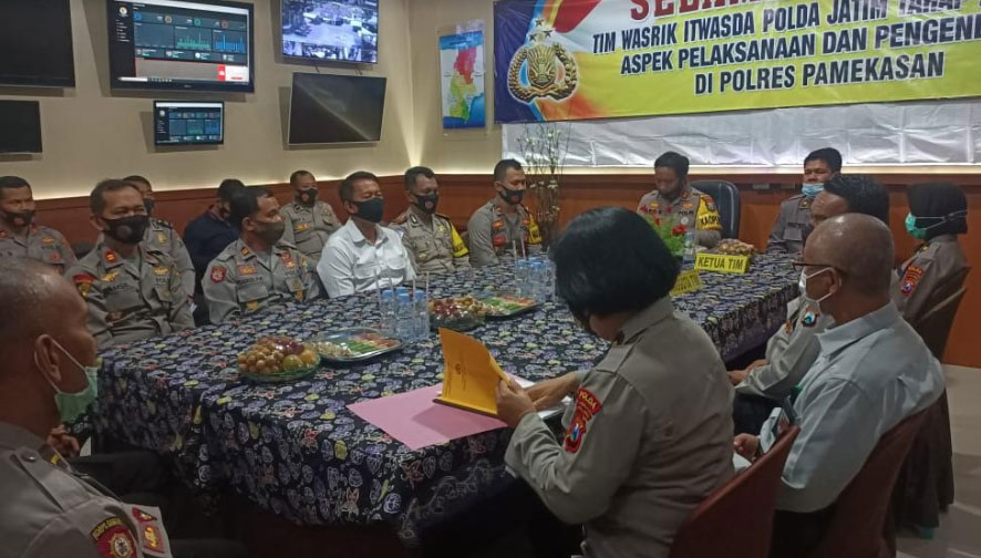 TRIBUNMADURA.COM, PAMEKASAN - Tim Wasrik Itwasda Polda Jatim melakukan pengecekan aspek administrasi bidang pelaksanaan dan pengendalian tahap II tahun 2020 di Ruang Data Polres Pamekasan, Kamis (5/11/2020).