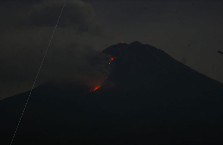 Menurut data dari Pusat Vulkanologi dan Mitigasi Bencana Geologi, Gunung Semeru dalam kurun waktu 18.00 - 24.00 mengeluarkan guguran lava pijar hingga 3 kali.