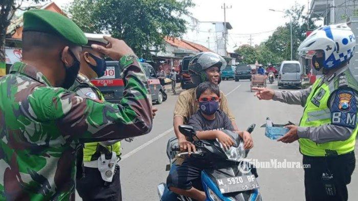 Pendisiplinan Prokes di Depan Pasar Kolpajung Pamekasan, Petugas Ajak Masyarakat Patuh Pakai Masker