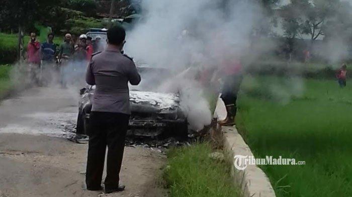 Mobil Sedan Tak Bertuan Terbakar di Area Persawahan Tanah Merah Bangkalan, Ini Kronologinya