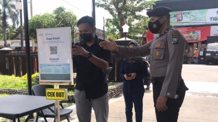 TRIBUNMADURA.COM, BLITAR - Polres Blitar Kota mulai menerapkan aplikasi PeduliLindungi untuk mengecek status kesehatan terutama vaksin Covid-19 bagi para pengunjung.