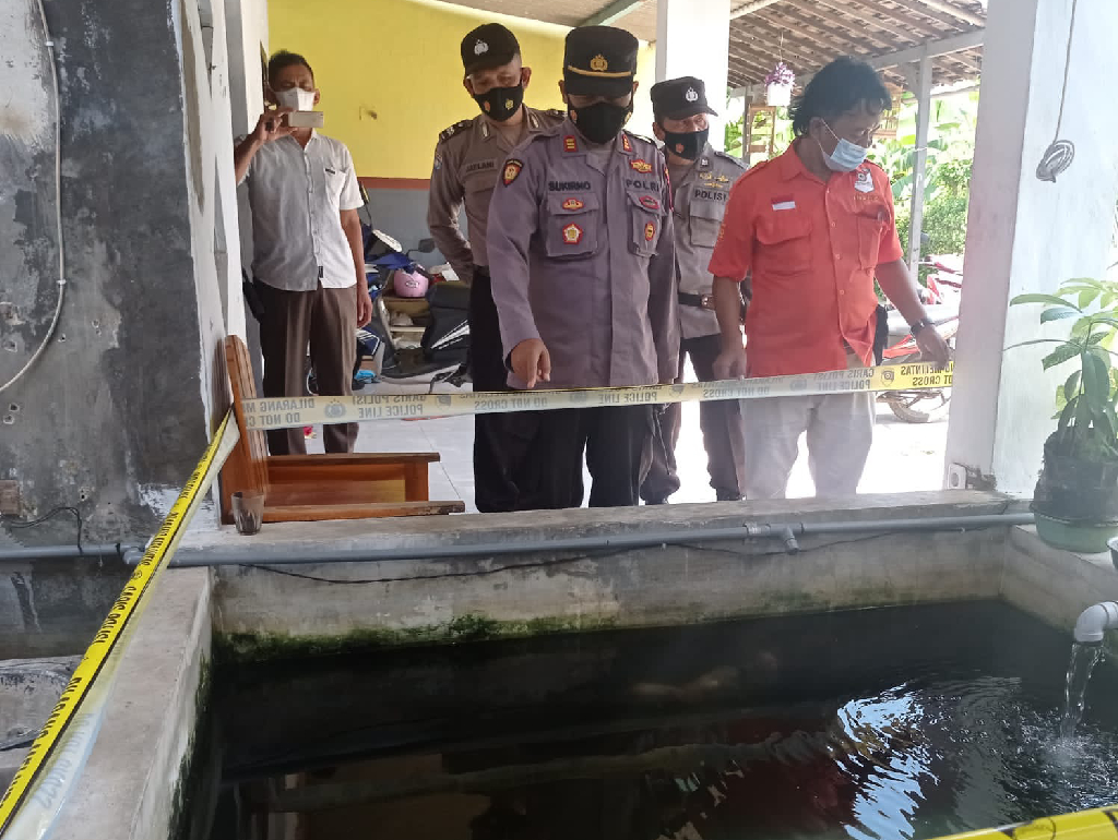 DT yang mencari ke arah kolam di samping rumah, melihat tubuh DT mengapung di kolam.