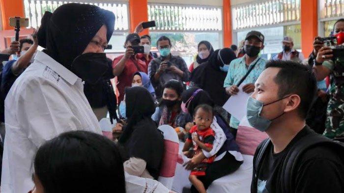 TRIBUNMADURA.COM, SURABAYA - Menteri Sosial Tri Rismaharini bertemu dengan para Keluarga Penerima Manfaat (KPM) di Surabaya, Senin (27/12/2021).