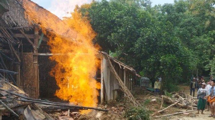 "Akibat disertai angin, semburan api mengenai dapur dan juga membakar sebagian rumah," terangnya.