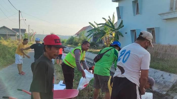 Polisi RW Polres Pamekasan Bersih-bersih Saluran Air, Ajak Warga Ronda Malam Cegah Kriminalitas