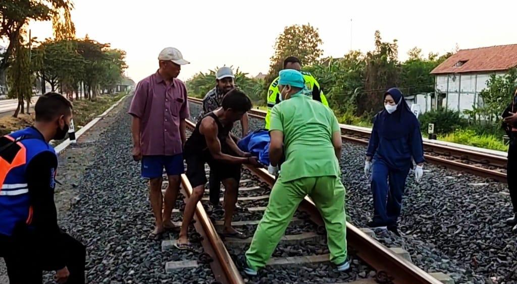 Seorang pengendara motor, Atrup (50) warga Giri, Kebomas, Gresik ditemukan meninggal usai tertabrak KA Argo Bromo Anggrek, Senin (9/11/2023).