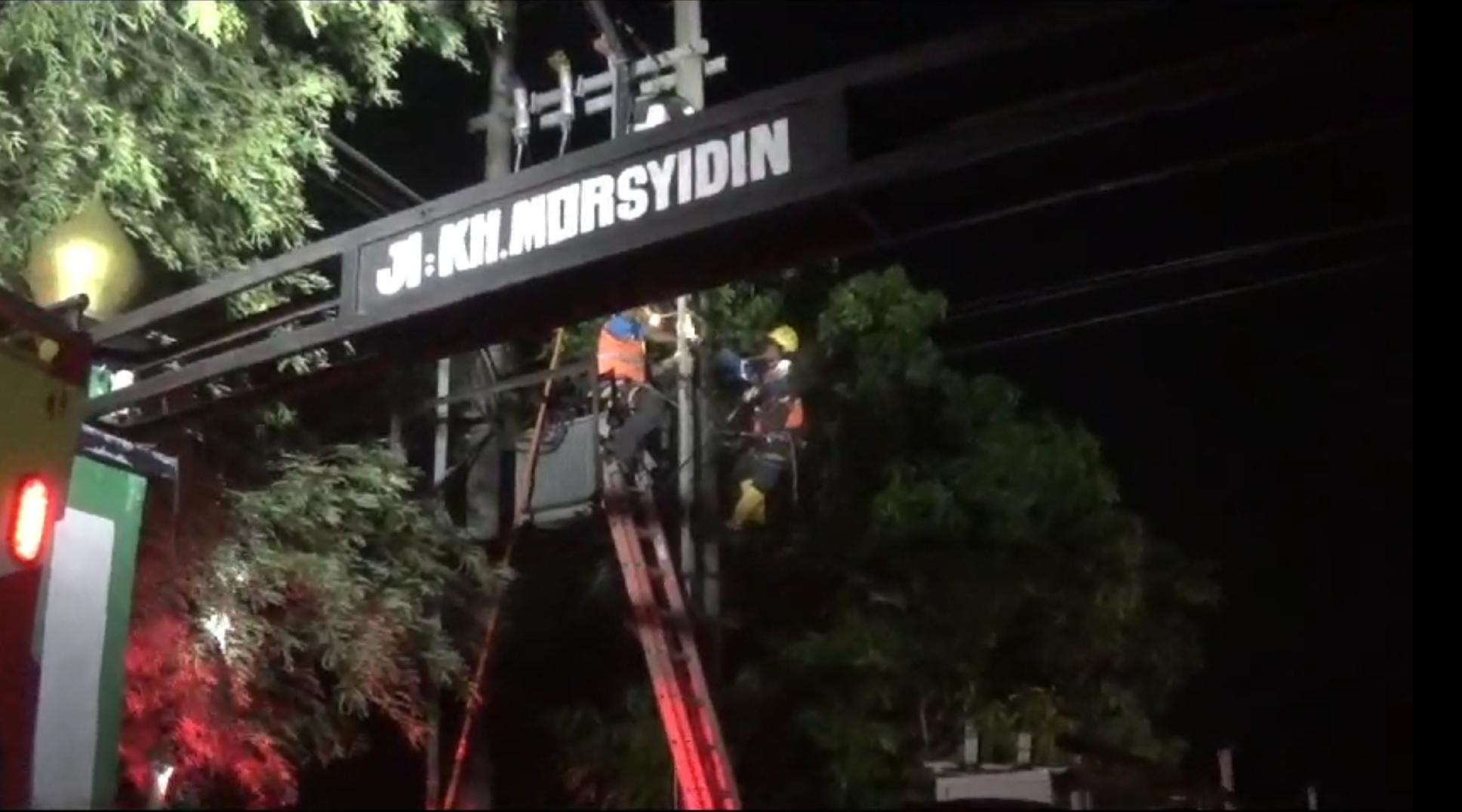 Petugas Pelayanan Teknik (Yantek) PLN ULP Bangkalan berjibaku guna memulihkan pasokan listrik usai terjadi kebakaran pada Gardu Trafo Tiang (GTT) 142