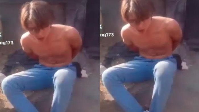 Video amatir berdurasi 34 detik itu, diunggah sebuah akun TikTok @pelengpeleng173. Tampak pelaku dudung jongkok setelah diamankan warga di pinggir jalan.