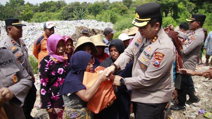 Kapolres Sumenep, AKBP Henri Noveri Santoso melakukan bakti sosial bagi masyarakat kurang mampu di kawasan Tempat Pembuangan Akhir (TPA)