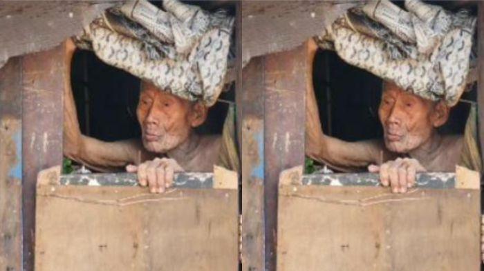 TRIBUNMADURA.COM - Di usianya yang sangat sepuh, Kakek Jaung tinggal seorang diri di sebuah gubuk di Desa Lubangbuaya, Kecamatan Cetu, Bekasi, Jawa Barat.