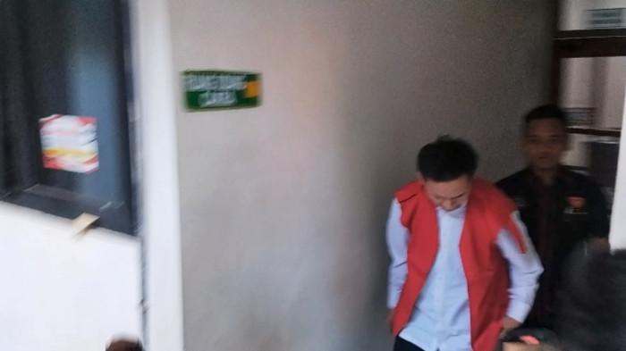 Usai menjalani sidang, terdakwa dengan ekspresi wajah datar dikeler petugas kembali menuju ke dalam tahanan.