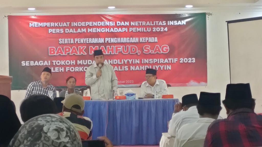 Forum Komunikasi Jurnalis Nahdliyin menggelar sarasehan bertemakan, ‘Memperkuat Independensi dan Netralitas Pers dalam Menghadapi Pemilu 2024’