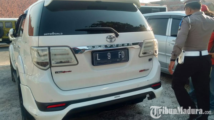 Mobil Fortuner milik calon kepala Desa Bencelok dihentikan anggota Satlantas Polres Sampang.