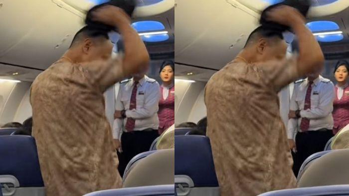 Pria ini viral di media sosial karena sempat membuat ulah di dalam pesawat hingga membuat penumpang lain panik.